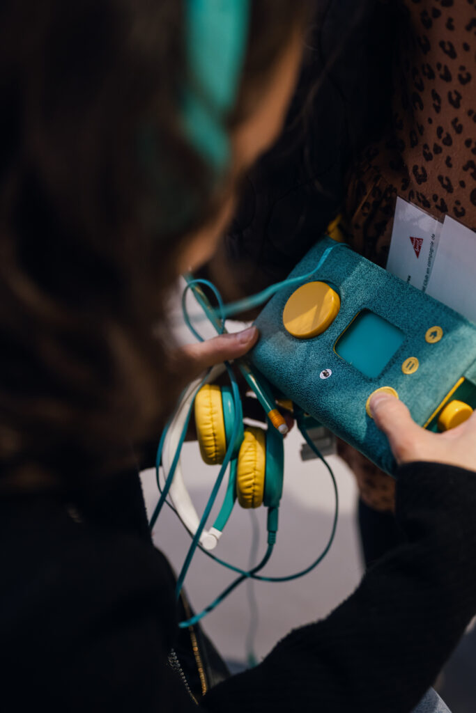 Pour la quatrième année au MAIF Social Club, Lunii, l’inventeur de la conteuse audio préférée des enfants a imaginé avec les équipes du MAIF Social Club, un contenu de médiation audio inédit et propose aux enfants une balade immersive entre rêve et réalité. Accompagné par une voix douce et enveloppante, les enfants sont tantôt interrogés sur leur ressenti face aux œuvres, tantôt plongés dans l’univers de « Line et Spiru ».